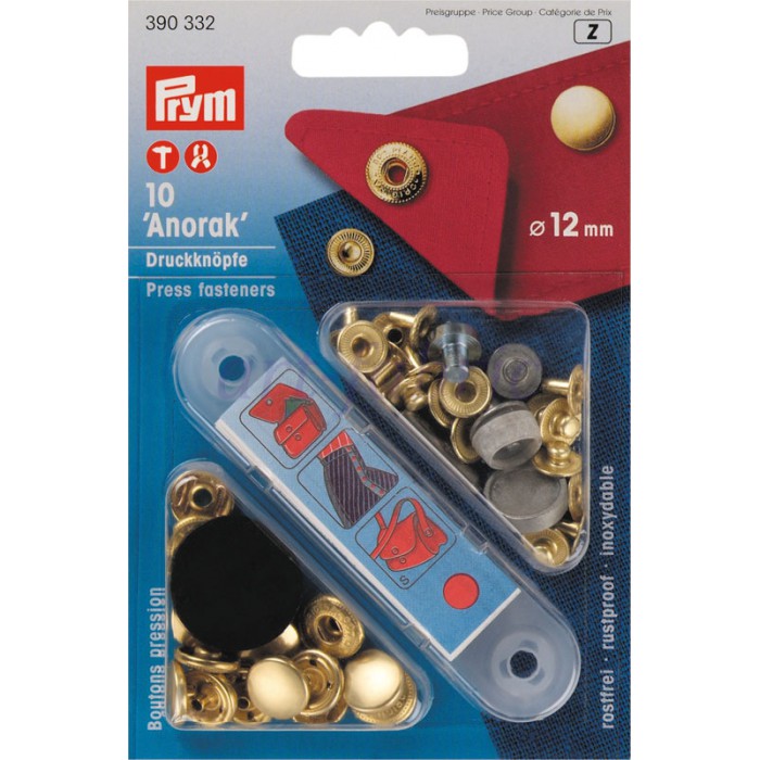 390332 Prym Кнопки "Anorak" золотистые 12мм по самой низкой цене