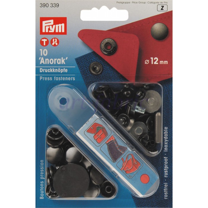 390339 Prym Кнопки "Anorak" черные 12мм по самой низкой цене
